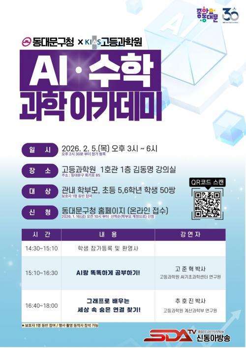 Çà»ç´Â 2¿ù 5ÀÏ(¸ñ) ¿ÀÈÄ 3½ÃºÎÅÍ 6½Ã±îÁö °íµî°úÇпø 1È£°ü ±èµ¿¸í°Àǽǿ¡¼ ÁøÇàµÈ´Ù. ´ë»óÀº µ¿´ë¹®±¸¿¡ °ÅÁÖÇÏ´Â ÃʵîÇб³ 5¡¤6Çгâ Çлý°ú Çкθð 50½Ö(ÃÑ 100¸í)ÀÌ´Ù. ½ÅûÀº 2¿ù 2ÀϱîÁö µ¿´ë¹®±¸ ´©¸®Áý¿¡¼ ¼±Âø¼øÀ¸·Î ¹Þ´Â´Ù. º¸È£ÀÚ´Â 1Àθ¸ µ¿¹ÝÇÒ ¼ö ÀÖ°í, Çà»ç ´çÀÏ ÁÖÂ÷ Áö¿øÀº ¾ø¾î ´ëÁß±³Åë ÀÌ¿ëÀÌ ±ÇÀåµÈ´Ù.