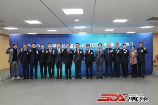 Çà»ç¿¡´Â ¼­ÃµÈ£ ±¹È¸ÀÇ¿ø, °ø¿µ¹Î °íÈﱺ¼ö, ¹Úµ¿½Ä »çõ½ÃÀå, °ü°è °ø¹«¿ø, ÇÐ°è ¹× »ê¾÷°è Àü¹®°¡ µîÀÌ Âü¼®ÇØ ¿ìÁÖÇ×°øº¹ÇÕµµ½Ã Ưº°¹ýÀÇ Çʿ伺°ú ÃßÁø ¹æÇâ¿¡ ´ëÇØ ½ÉµµÀÖ°Ô ³íÀÇÇß´Ù.