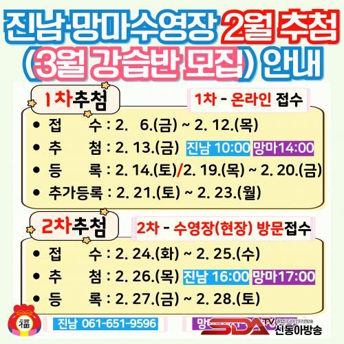 Áø³²¼ö¿µÀå°ú ¸Á¸¶¼ö¿µÀåÀº 2¿ù 12ÀϱîÁö, ¿õõ¼ö¿µÀåÀº 2¿ù 11ÀϱîÁö 3¿ù °­½À¹Ý ¿Â¶óÀÎ Á¢¼ö°¡ °¡´ÉÇϸç, 1Â÷ Ãß÷ ÀÌÈÄ °á¿ø Àοø¿¡ ÇÑÇØ 2Â÷ ¹æ¹® Á¢¼ö ¹× Ãß÷ÀÌ ÁøÇàµÈ´Ù.