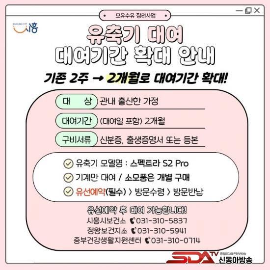 À¯Ãà±â ´ë¿© ½Åû ¹× ÀÚ¼¼ÇÑ »çÇ×Àº ½ÃÈï½Ãº¸°Ç¼Ò(031-310-5837), Á¤¿Õº¸°ÇÁö¼Ò(031-310-5941), Áߺΰǰ»ýȰÁö¿ø¼¾ÅÍ(031-310-0714)·Î ¹®ÀÇÇÏ¸é µÈ´Ù.