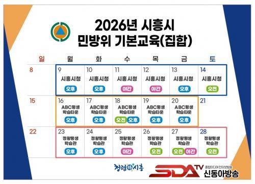 ÁýÇÕ±³À°Àº 3¿ù 9ÀϺÎÅÍ 28ÀϱîÁö 20Àϰ£ ÃÑ 19ȸ¿¡ °ÉÃÄ ±Ç¿ªº°·Î ÁøÇàµÈ´Ù. ±³À° Àå¼Ò´Â ½ÃÈï½Ãû, ½ÃÈïABCÇູÇнÀŸ¿î, Á¤¿ÕÆò»ýÇнÀ°ü µîÀ̸ç, ´ë¿øµéÀÇ Âü¿© ÆíÀǸ¦ À§ÇØ ¾ß°£±³À° 4ȸ¿Í ÁÖ¸» ±³À° 2ȸµµ º°µµ·Î Æí¼ºÇß´Ù. ÀÚ¼¼ÇÑ ±³À° ÀÏÁ¤Àº ½ÃÈï½Ãû ´©¸®Áý¿¡¼ È®ÀÎÇÒ ¼ö ÀÖ´Ù.