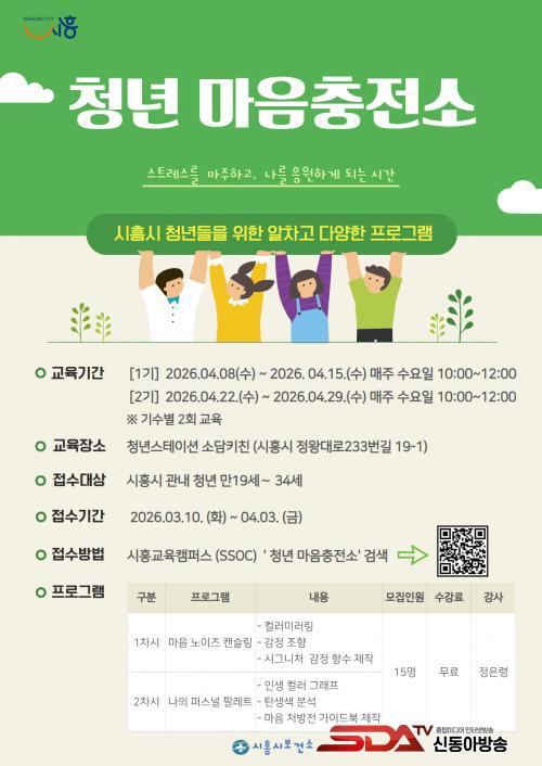 Âü¿©¸¦ Èñ¸ÁÇϴ û³âÀº ¿À´Â 3¿ù 10ÀϺÎÅÍ 4¿ù 3ÀϱîÁö ½ÃÈï±³À°Ä·ÆÛ½º ¡®½ï(SSOC)¡¯¿¡¼­ ¡®Ã»³â ¸¶À½ÃæÀü¼Ò¡¯¸¦ °Ë»öÇØ¼­ ½ÅûÇÏ¸é µÈ´Ù. ÇÁ·Î±×·¥ ¹®ÀÇ´Â ½ÃÈï½Ãº¸°Ç¼Ò °Ç°­µ¹º½°ú(031-310-0767)·Î ÇÏ¸é µÈ´Ù.