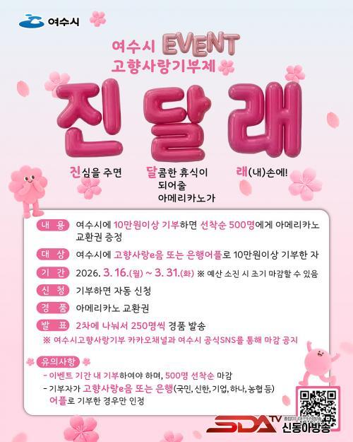 À̹ø Çà»ç´Â °íÇâ»ç¶ûeÀ½ ´©¸®Áý°ú ÀºÇà ¾Û(±¹¹Î,½ÅÇÑ,±â¾÷,Çϳª,³óÇù)À» ÅëÇØ °íÇâ»ç¶û±âºÎ±Ý 10¸¸ ¿ø ÀÌ»ó ±âºÎÀÚ¸¦ ´ë»óÀ¸·Î ¼±Âø¼ø 500¸í¿¡°Ô ¾Æ¸Þ¸®Ä«³ë ±³È¯±ÇÀ» Á¦°øÇÑ´Ù.
