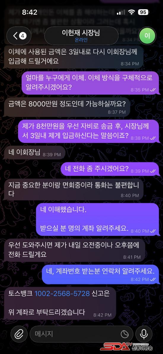 ½Ã °ü°èÀÚ´Â ¡°°øÁ÷ÀÚ°¡ ¸Þ½ÅÀú¸¦ ÅëÇØ °³ÀÎÀûÀ¸·Î ±ÝÀüÀ» ¿ä±¸Çϰųª °èÁ ÀÌü¸¦ ºÎŹÇÏ´Â ÀÏÀº °áÄÚ ÀÖÀ» ¼ö ¾ø´Â ÀÏ¡±À̶ó°í ¹àÇû´Ù. ½Ã´Â ¡®Å佺¹ðÅ© ½Å°íÀº¡¯ ¸íÀÇÀÇ °èÁ³ª À¯»çÇÑ ±ÝÀü ¿ä±¸ ¸Þ½ÃÁö¸¦ ¹ÞÀ» °æ¿ì Àý´ë ÀÀÇÏÁö ¸»°í Çϳ²½Ãû ¶Ç´Â °æÂûû(112)¿¡ ½Å°íÇØ ÁÙ °ÍÀ» °Åµì °Á¶Çß´Ù.
