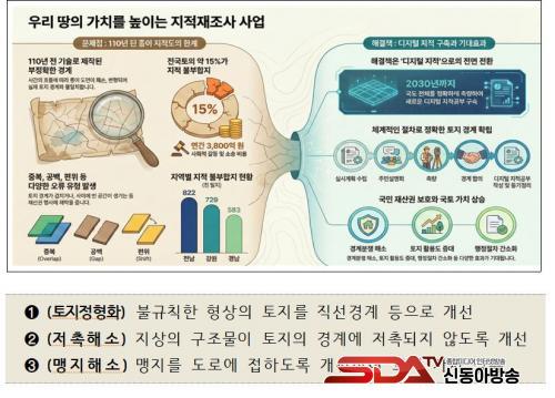 ÁöÀûÀçÁ¶»ç»ç¾÷Àº ÀÏÁ¦°­Á¡±â¿¡ ÀÛ¼ºµÈ Á¾ÀÌ ÁöÀûµµ¸¦ µðÁöÅÐ ÁöÀûÀ¸·Î ÀüȯÇÏ°í ½ÇÁ¦ ÅäÁö ÀÌ¿ë ÇöȲ°ú ¸ÂÁö ¾Ê´Â °æ°è¸¦ ¹Ù·ÎÀâ±â À§ÇØ ÃßÁøµÇ´Â ±¹°¡»ç¾÷À¸·Î, ÅäÁö °æ°è ºÐÀï ÇØ¼Ò¿Í ½Ã¹Î Àç»ê±Ç º¸È£¿¡ Áß¿äÇÑ ¿ªÇÒÀ» Çϰí ÀÖ´Ù.