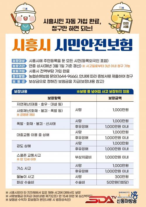 º¸Àå ´ë»óÀº ½ÃÈï½Ã¿¡ Áֹεî·ÏÀ» µÐ ¸ðµç ½Ã¹Î(µî·Ï¿Ü±¹ÀÎ Æ÷ÇÔ)ÀÌ´Ù. º°µµÀÇ ½ÅûÀ̳ª °¡ÀÔ ÀýÂ÷ ¾øÀÌ ÀÚµ¿ °¡ÀÔµÇ°í º¸Çè·á´Â Àü¾× ½Ã°¡ ºÎ´ãÇϸç, Ÿ º¸Çè°ú Áߺ¹ º¸ÀåÀÌ °¡´ÉÇÏ´Ù.
