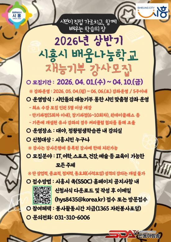 ½ÅûÀº ½ÃÈï±³À°Ä·ÆÛ½º ¡®½ï(SSOC)¡¯ ´©¸®Áý °øÁö»çÇ׿¡¼ ½Åû¼¸¦ ³»·Á¹Þ¾Æ ÀÛ¼ºÇÑ µÚ ÀüÀÚ¿ìÆíÀ̳ª ¹æ¹®À¸·Î °¡´ÉÇÏ´Ù. °»ç ¼±Á¤Àº 4¿ù 15ÀÏ¿¡ ÀÌ·ïÁö¸ç, Âü¿© °»ç¿¡°Ô´Â 1365 ÀÚ¿øºÀ»çÆ÷ÅÐÀ» ÅëÇÑ ºÀ»çȰµ¿ ½Ã°£ÀÌ ºÎ¿©µÈ´Ù.