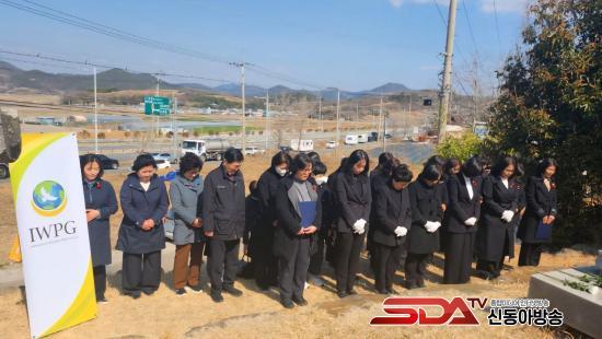 »çÁø=IWPG ¿©¼öÁöºÎ°¡ À±Çü¼÷ ¿­»çÀÇ ¹¦ ¾Õ¿¡¼­ űر⸦ µé¸ç ¿­»çÀÇ ¶æÀ» ±â³äÇϰí ÀÖ´Ù.