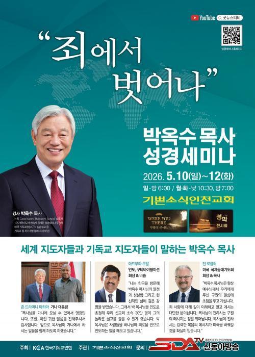 Çѱ¹±âµ¶±³¿¬ÇÕÀÌ ÁÖÃÖÇÏ°í ±â»Û¼Ò½Ä¼±±³È¸ ÁÖ°üÀ¸·Î ¿¸®´Â À̹ø ¼º°æ¼¼¹Ì³ªÀÇ ÁÖ°»ç´Â ±â»Û¼Ò½Ä°³²±³È¸ ¹Ú¿Á¼ö ¸ñ»ç´Ù. ±×´Â ¡®ÁË¿¡¼ ¹þ¾î³ª¡¯¸¦ ÁÖÁ¦·Î, »ç¶÷µé¿¡°Ô Á˰¡ ¾î¶»°Ô ¾Ä¾îÁö´ÂÁö ¼³¸íÇϰí, ¼º°æÀÌ ¸»ÇÏ´Â ÂüµÈ ½Å¾ÓÀÌ ¹«¾ùÀÎÁö °¿¬ÇÒ ¿¹Á¤ÀÌ´Ù. ¸Å °¿¬ Àü¿¡´Â °¢±¹¿¡¼ Âü°¡ÇÑ ¸ñȸÀÚµéÀÇ ±âµµ¿Í °£Áõ, ±×¶ó½Ã¾Æ½ºÇÕâ´ÜÀÇ Âù¾çÀÌ ÀÖ°í, °¿¬ ÈÄ¿¡´Â ½Å¾Ó »ó´ãµµ °¡´ÉÇÏ´Ù.