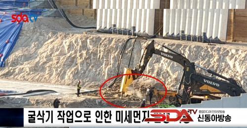 °ø»çÀå ¿©·¯ °÷Àº Æó½Ã¸àÆ®°¡ ħÀüµÇ¾î ±×´ë·Î ³ëÃâµÇ¾î ÀÖ´Ù. °ø»çÇöÀå ³» ±¼»è±â¸¦ ¿î¿µÇϰí Àִµ¥ ±¼»è±â ÀÛ¾÷À¸·Î ÀÎÇØ ºñ»ê¸ÕÁö ¹ß»ýÀÌ °¡Áߵǰí ÀÖ´Ù.