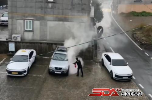 ¿©¼öÇØ°æ, Ãâ±Ù Áß ÁÖÂ÷ Â÷·® È­Àç Áø¾ÐÇÑ ¿ë±â ÀÖ´Â ½ÅÀÓ °æÂû±³À°»ý