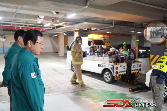 À̳¯ ÈÆ·Ã ÇöÀå¿¡¼ ¡®½Ãû-¼Ò¹æ-°æÂû¡¯Àº ¸¶Ä¡ ÇϳªÀÇ À¯±âüó·³ ¿òÁ÷¿´´Ù. Çϳ²°æÂû¼´Â ÈÆ·Ã ½ÃÀÛ°ú µ¿½Ã¿¡ ÁöÇÏÁÖÂ÷Àå ÁøÀÔ Â÷·®À» ÅëÁ¦Çϰí 2Â÷ ÅëÁ¦¼±À» ±¸ÃàÇØ ÇöÀå ¾ÈÀüÀ» È®º¸Çß´Ù. Çϳ²¼Ò¹æ¼´Â È®º¸µÈ ¾ÈÀü ±¸¿ª ¾È¿¡¼ £Àº ¿¬±â¸¦ ¶Õ´Â ¡®¶óÀÌÆ® ¶óÀΡ¯°ú ¡®¹è¿¬Â÷¡¯¸¦ Àü°³Çϰí, Àü±âÂ÷ ÈÀçÀÇ ³Á¦ÀÎ ¿ÆøÁÖ¸¦ ¡®À̵¿½Ä ¼ÒȼöÁ¶¡¯·Î Á¦¾ÐÇß´Ù. Çϳ²½Ã´Â ÈÀç Áø¾Ð Á÷ÈÄ ÁöÇÏ¿¡ ³²Àº Â÷·®À» Áö»óÀ¸·Î ½Å¼ÓÈ÷ °ßÀÎÇÏ¸ç »çÈÄ ¼ö½ÀÀ» ¸Ã¾Ò´Ù.