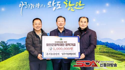 [½Åµ¿¾Æ¹æ¼Û °æ³²ÇÔ¾È=À̽ŵ¿±âÀÚ] ÇԾȱºÀåÇÐÀç´ÜÀº Áö³­ 19ÀÏ Ä¥¿ø¿î¼­³ó°ø´ÜÁö ÀÔÁÖ±â¾÷üÇùÀÇȸ¿¡¼­ ÀåÇбâ±Ý 500¸¸ ¿øÀ» ±âŹÇß´Ù°í ¹àÇû´Ù.