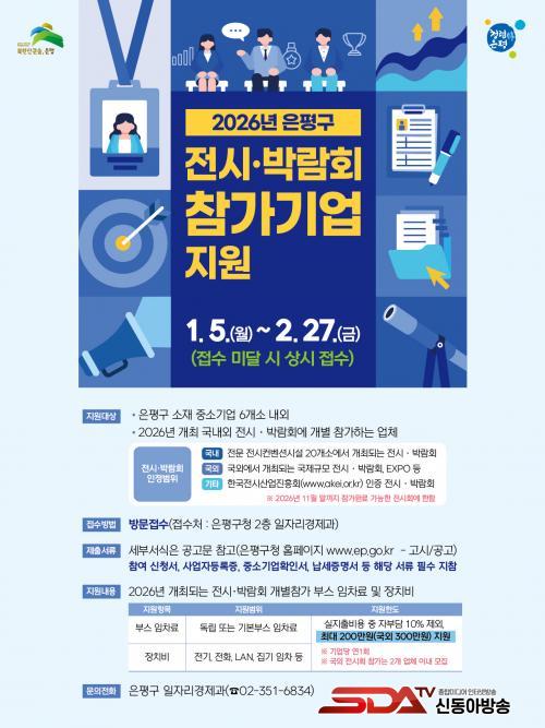 [½Åµ¿¾Æ¹æ¼Û ÀºÆò±¸=À̽ŵ¿±âÀÚ] ¼­¿ï ÀºÆò±¸´Â ³»´Þ 27ÀϱîÁö ¡®2026³â ±¹³»¿Ü Àü½Ã‧¹Ú¶÷ȸ °³º° Âü°¡ Áö¿ø»ç¾÷¡¯¿¡ Âü¿©ÇÒ ±â¾÷À» ¸ðÁýÇÑ´Ù°í ¹àÇû´Ù.