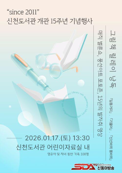 [½Åµ¿¾Æ¹æ¼Û ½ÃÈï½Ã=À̽ŵ¿±âÀÚ] ½ÃÈï½Ã´Â ¿À´Â 1¿ù 17ÀÏ ½Åõµµ¼­°ü¿¡¼­ ¡®°³°ü 15Áֳ⠱â³äÇà»ç¡¯¸¦ ¿­°í, À¯¾Æµ¿ ¹× ¾î¸°ÀÌ µ¿¹Ý °¡Á· 100¿© ¸íÀ» ´ë»óÀ¸·Î ±×¸²Ã¥ ³¶µ¶°ú ¸¶¼ú °ø¿¬À» ¿î¿µÇÑ´Ù. Çà»ç´Â À̳¯ ¿ÀÈÄ 1½Ã 30ºÐºÎÅÍ 3½Ã 30ºÐ±îÁö ÁøÇàµÈ´Ù.