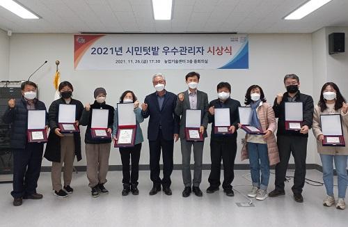 [½Åµ¿¾Æ¹æ¼Û´º½º=Á¤ÁöÀ± ±âÀÚ] ÁøÁֽô Áö³­ 26ÀÏ ¿ÀÈÄ 5½Ã 30ºÐ ³ó¾÷±â¼ú¼¾ÅÍ È¸Àǽǿ¡¼­ ¡®2021³â ½Ã¹ÎÅÔ¹ç ¿ì¼ö°ü¸®ÀÚ ½Ã»ó½Ä¡¯À» °³ÃÖÇß½À´Ï´Ù. À̹ø ½Ã»óÀº 6°³¿ù°£ ¾ö°ÝÇÑ ½É»ç¸¦ °ÅÃÄ ½Ã¹ÎÅÔ¹çÀ» ¼º½ÇÇÏ°Ô °ü¸®ÇÑ 10¸íÀ» ¼±¹ß¡¤½Ã»óÇÏ´Â °ÍÀ¸·Î, ¿ì¼ö°ü¸®ÀÚ¡¦