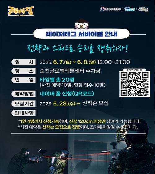[½Åµ¿¾Æ¹æ¼Û ¼øÃµ=±è¿ëÈÆ ±âÀÚ] ¼øÃµ½Ã(½ÃÀå ³ë°ü±Ô)´Â ¿À´Â 7ÀϺÎÅÍ 8ÀϱîÁö ¿øµµ½É ½Ã¹Î·Î¿¡¼­ °³ÃֵǴ ¡®ÁÖ¸»ÀÇ ±¤À塯Çà»çÀÇ ÁÖ¿ä üÇèÇÁ·Î±×·¥À¸·Î ¡®·¹ÀÌÀú űס¯¸¦ ¼±º¸ÀδÙ. ·¹ÀÌÀú ű×(Laser Tag)¶õ ºñÁ¢ÃËÇü ÀüÀÚ »ç°Ý ½ºÆ÷Ã÷·Î, ÃÑ¾Ë ´ë½Å Àû¿Ü¼± ·¹ÀÌ¡¦