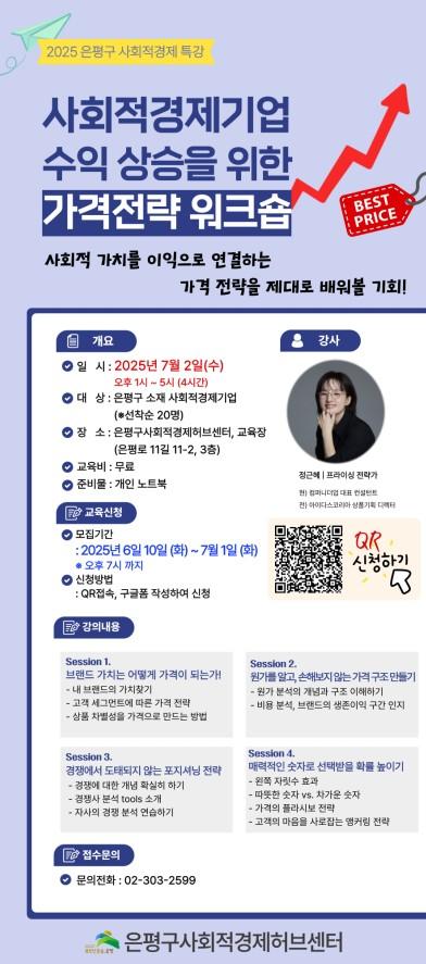 [½Åµ¿¾Æ¹æ¼Û ÀºÆò±¸=À̽ŵ¿±âÀÚ] ¼­¿ï ÀºÆò±¸´Â »çȸÀû°æÁ¦±â¾÷ÀÇ ¼öÀÍ ±¸Á¶¸¦ °³¼±ÇØ »çȸÀû °¡Ä¡ÀÇ Áö¼Ó °¡´É¼ºÀ» ³ôÀ̱â À§ÇØ ¡®»çȸÀû°æÁ¦±â¾÷ ¼öÀÍ »ó½ÂÀ» À§ÇÑ °¡°ÝÀü·« ¿öÅ©¼ó¡¯À» ³»´Þ 2ÀÏ °³ÃÖÇÑ´Ù°í ¹àÇû´Ù. À̹ø ¿öÅ©¼ó °­ÀÇ´Â ºê·£µå °¡Ä¡´Â ¾î¶»°Ô °¡°Ý¡¦