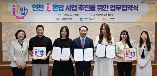 [½Åµ¿¾Æ¹æ¼Û ÀÎõ= À±¹Î½Ä ±âÀÚ]ÀÎõ±¤¿ª½Ã(½ÃÀå À¯Á¤º¹)´Â 6¿ù 17ÀÏ ÀÎõ½Ãû¿¡¼­ °á½Ä¾Æµ¿À» À§ÇÑ ¡®¾ÆÀÌ(i)¿Â¹ä »ç¾÷¡¯ ÃßÁøÀ» À§ÇÑ ¾÷¹«Çù¾àÀ» ü°áÇß´Ù°í ¹àÇû´Ù. À̳¯ Çù¾à½Ä¿¡´Â À¯Á¤º¹ ÀÎõ½ÃÀå°ú ±è¼º·É (»ç)¼±ÇÑ¿µÇâ·Â°¡°Ô ÀÇÀå, ±èÇÏ¿¬ ¢ß³ª´®ºñŸ¹Î ´ë¡¦