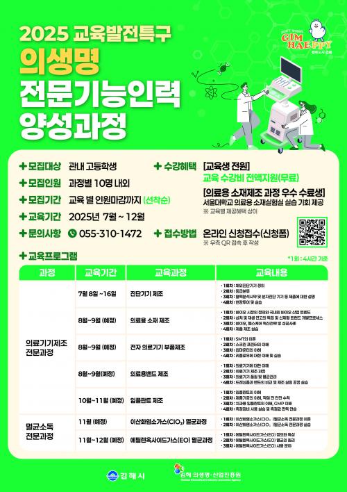 [½Åµ¿¾Æ¹æ¼Û °æ³²±èÇØ=³²±Ã¿µ±â±âÀÚ] ±èÇØÀÇ»ý¸í»ê¾÷ÁøÈï¿øÀº ±³À°¹ßÀüƯ±¸ ÁöÁ¤¿¡ ¹ß¸ÂÃç Áö¿ª Áַ»ê¾÷¿¡ ƯȭµÈ ½Ç¹«Çü Àü¹®±â´ÉÀη ¾ç¼º ÇÁ·Î±×·¥À» º»°Ý ¿î¿µÇÑ´Ù°í ¹àÇû´Ù. ¿ÃÇØ ÇÁ·Î±×·¥Àº ÀÇ·á±â±â¿Í ¹ÙÀÌ¿ÀÇコ »ê¾÷ÀÇ ¼ºÀå ±â¹ÝÀ» ¸¶·ÃÇϰí, »ê¾÷ ÇöÀå¿¡¡¦