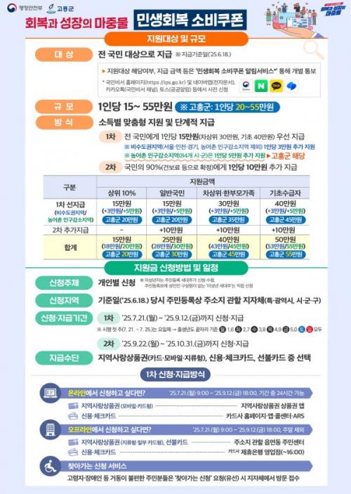 [½Åµ¿¾Æ¹æ¼Û Àü³²°íÈï=¹Ú±¤¿Á±âÀÚ] °íÈﱺ(±º¼ö °ø¿µ¹Î)Àº ħüµÈ Áö¿ª°æÁ¦ Ȱ¼ºÈ­¿Í ¼Ò»ó°øÀÎ ¸ÅÃâ Áõ´ë¸¦ À§ÇØ ¿À´Â 21ÀϺÎÅÍ ½ÃÇàµÇ´Â ¡®¹Î»ýȸº¹ ¼ÒºñÄíÆù 1Â÷ Áö±Þ¡¯À» Â÷Áú ¾øÀÌ Áغñ ÁßÀ̶ó°í ¹àÇû´Ù. À̹ø 1Â÷·Î Áö±ÞµÇ´Â ¼ÒºñÄíÆùÀº °íÈﱺ ±âÁØ ÃÖ¼Ò 20¸¸¿ø¡¦