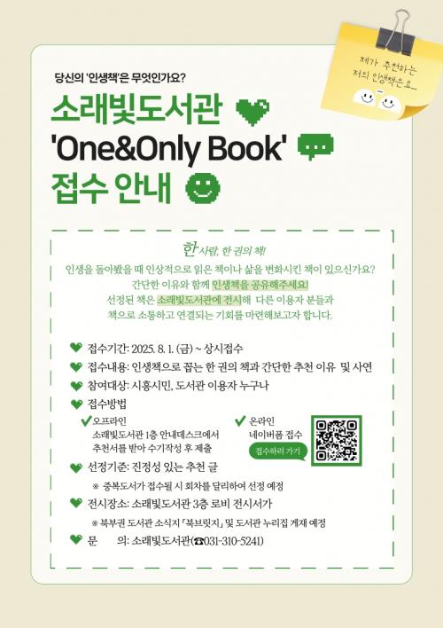 [½Åµ¿¾Æ¹æ¼Û ½ÃÈï½Ã=À̽ŵ¿±âÀÚ] ½ÃÈï½Ã ¼Ò·¡ºûµµ¼­°üÀº ¿À´Â 8¿ù 1ÀϺÎÅÍ ½Ã¹ÎÀÌ Á÷Á¢ ÀÚ½ÅÀÇ ¡®ÀλýÃ¥¡¯À» ÃßõÇÏ´Â Âü¿©Çü ºÏ Å¥·¹ÀÌ¼Ç ¡®One&Only Book¡¯À» ¿î¿µÇÑ´Ù. ¡®One&Only Book¡¯Àº »îÀÇ ÀüȯÁ¡ÀÌ µÇ¾ú°Å³ª Ưº°ÇÑ ¿ï¸²À» ÁØ ÇÑ ±ÇÀÇ Ã¥, ȤÀº ¿À·£ ½Ã°£ ¡¦