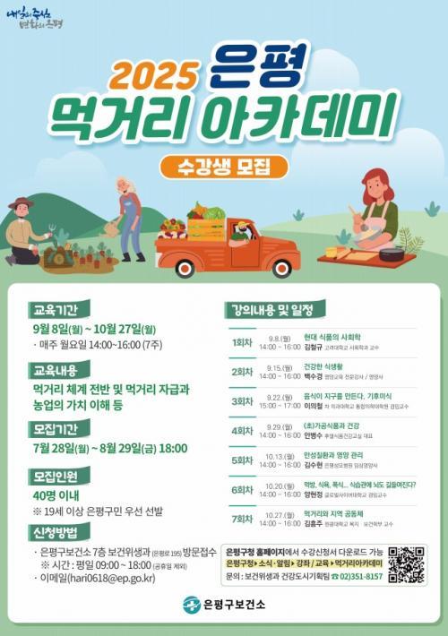[½Åµ¿¾Æ¹æ¼Û ÀºÆò±¸=À̽ŵ¿±âÀÚ] ¼­¿ï ÀºÆò±¸´Â ¸Ô°Å¸® ÀÌÇØµµ¸¦ Á¦°íÇϰí Áö¿ª»çȸÀÇ ½Ä»ýȰ ¿ª·®À» °­È­ÇØ ¡®°Ç°­µµ½Ã ÀºÆò¡¯À» Á¶¼ºÇϱâ À§ÇØ ¡®¸Ô°Å¸® ¾ÆÄ«µ¥¹Ì¡¯ ¼ö°­»ýÀ» ³»´Þ 29ÀϱîÁö ¸ðÁýÇÑ´Ù°í ¹àÇû´Ù. ¡®¸Ô°Å¸® ¾ÆÄ«µ¥¹Ì¡¯´Â Çö´ë ½ÄǰÀÇ »çȸÇÐ, °Ç°­ÇÑ ¡¦