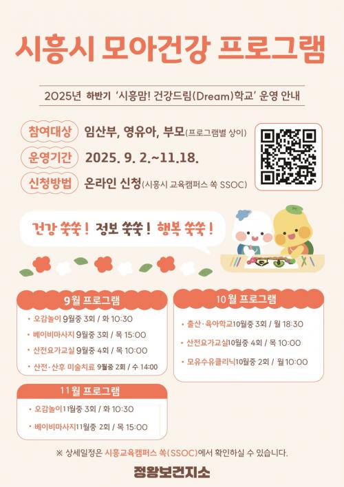 [½Åµ¿¾Æ¹æ¼Û ½ÃÈï½Ã=À̽ŵ¿±âÀÚ] ½ÃÈï½Ã´Â °Ç°­ÇÑ ÀӽŰú ÇູÇÑ Ãâ»êÀ» Áö¿øÇϱâ À§ÇÑ ¡®ÇϹݱ⠸ð¾Æ(Ù½ä®) °Ç°­ÁõÁø ÇÁ·Î±×·¥¡¯ Âü¿©ÀÚ¸¦ 8¿ù 1ÀϺÎÅÍ ¼±Âø¼øÀ¸·Î ¸ðÁýÇÑ´Ù. À̹ø ÇϹݱâ ÇÁ·Î±×·¥Àº Àӽš¤Ãâ»ê¡¤À°¾Æ ´Ü°èº°·Î ²À ÇÊ¿äÇÑ 6°³ °úÁ¤, ÃÑ 26ȸ¿¡ °ÉÃÄ¡¦