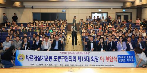 [½Åµ¿¾Æ¹æ¼Û µµºÀ±¸=À̽ŵ¿±âÀÚ] ¼­¿ï µµºÀ±¸´Â Áö³­ 7¿ù 26ÀÏ µµºÀ±¸¹Îȸ°ü ¼Ò°ø¿¬Àå¿¡¼­ '¹Ù¸£°Ô»ì±â¿îµ¿ µµºÀ±¸ÇùÀÇȸ Á¦15´ë ȸÀå ÀÌ¡¤ÃëÀÓ½Ä'À» °³ÃÖÇß´Ù. À̳¯ ÀÌ‧ÃëÀӽĿ¡¼­´Â Á¦13¡¤14´ë È«¼º´ë ȸÀåÀÇ ÀÌÀÓ°ú Á¦15´ë ÀÌÀ°Çà ȸÀåÀÇ ÃëÀÓÀÌ °ø½ÄÀûÀ¸·Î¡¦
