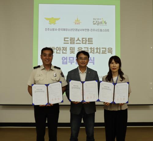 [½Åµ¿¾Æ¹æ¼Û °æ³²ÁøÁÖ=³²±Ã¿µ±â±âÀÚ] ÁøÁֽô 5ÀÏ Ãæ¹«°øµ¿ ¼ÒÀç ÁøÁÖº¹ÇÕÇõ½Å¼¾ÅÍ 1Ãþ µå¸²½ºÅ¸Æ® ±³À°½Ç¿¡¼­ ¡®¼Ò¹æ¾ÈÀü ¹× ÀÀ±Þóġ ±³À°¡¯¿î¿µÀ» À§ÇÑ ¾÷¹« Çù¾à½ÄÀ» °³ÃÖÇß´Ù. À̳¯ Çù¾à½Ä¿¡´Â ÁøÁֽø¦ ºñ·ÔÇÑ ÁøÁּҹ漭, Çѱ¹Çؾç¼Ò³â´Ü °æ³²¼­ºÎ¿¬¸Í µî 3°³¡¦