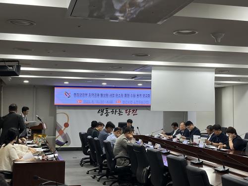 [½Åµ¿¾Æ¹æ¼Û=ÀÌÀçö±âÀÚ] ´çÁø½Ã(½ÃÀå ¿À¼ºÈ¯)´Â Áö³­ 19ÀÏ ´çÁø½Ãû ¼ÒȸÀǽǿ¡¼­ ¡®Áö¿ª°æÁ¦ Ȱ¼ºÈ­ »ç¾÷ ¸¶½ºÅÍ Ç÷£ ¼ö¸³ ¿ë¿ª º¸°íȸ¡¯¸¦ °³ÃÖÇß´Ù°í 20ÀÏ ¹àÇû´Ù. À̹ø º¸°íȸ´Â ÇàÁ¤¾ÈÀüºÎ Áö¿ª°æÁ¦ Ȱ¼ºÈ­ °ø¸ð»ç¾÷ÀÇ ÀÏȯÀ¸·Î ÃßÁø ÁßÀÎ ¡®½ÅÆò½ÃÀå ·ÎÄúꡦ