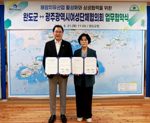 [½Åµ¿¾Æ¹æ¼Û ¿Ïµµ=À̼±Á¾ ±âÀÚ] ¿Ïµµ±º(±º¼ö ½Å¿ìö)ÀÌ ±¤ÁÖ¿©¼º´ÜüÇùÀÇȸ(ȸÀå ÀÌ¿µ¼÷)¿Í ¿ÏµµÇؾçÄ¡À¯»ê¾÷ Ȱ¼ºÈ­ ¹× ±¤ÁÖ¿©¼º´ÜüÇùÀÇȸ¿ÍÀÇ »ó»ýÀ» À§ÇÑ ¾÷¹« Çù¾àÀ» ü°áÇß´Ù. Çù¾à½ÄÀº Áö³­ 8¿ù 21ÀÏ ¿Ïµµ±ºÃ»¿¡¼­ ÁøÇàµÆÀ¸¸ç, ½Å¿ìö ¿Ïµµ±º¼ö¿Í ÀÌ¿µ¡¦