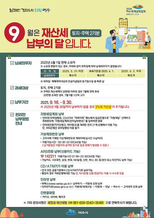 [½Åµ¿¾Æ¹æ¼Û ¿©¼ö=±è±â³² ±âÀÚ] ¿©¼ö½Ã(½ÃÀå Á¤±â¸í)´Â 2025³â 9¿ù Á¤±âºÐ Àç»ê¼¼(ÅäÁö, ÁÖÅà 2±âºÐ)·Î ÃÑ 414¾ï ¿ø(10¸¸ 4,543°Ç)À» ºÎ°úÇß´Ù°í ¹àÇû´Ù. ÀÌ´Â Áö³­ÇØ(404¾ï ¿ø)º¸´Ù 10¾ï ¿ø Áõ°¡ÇÑ ±Ô¸ð´Ù. ½Ã´Â À̹ø Áõ°¡ ¿äÀÎÀ¸·Î ÅäÁöºÐÀº ¡ã°³º°°ø½ÃÁö°¡ »ó½Â,¡¦