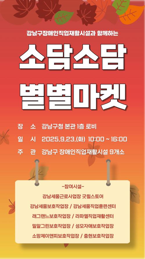 [½Åµ¿¾Æ¹æ¼Û °­³²±¸=À̽ŵ¿±âÀÚ] ²ÞÀÌ ¸ðÀÌ´Â µµ½Ã, ¹Ì·¡¸¦ ±×¸®´Â °­³²±¸°¡ 9¿ù 23ÀÏ ¿ÀÀü 10½ÃºÎÅÍ ¿ÀÈÄ 4½Ã±îÁö ±¸Ã» º»°ü 1Ãþ¿¡¼­ Àå¾ÖÀλý»êǰ Ưº°ÆÇ¸Å¡¤È«º¸Àü ¡®¼Ò´ã¼Ò´ã º°º°¸¶ÄÏ¡¯À» °³ÃÖÇÑ´Ù. À̹ø Çà»ç´Â Àå¾ÖÀÎÀÇ ÀÚ¸³ Áö¿ø°ú »çȸÀû °¡Ä¡ È®»êÀ» À§ÇØ ¡¦