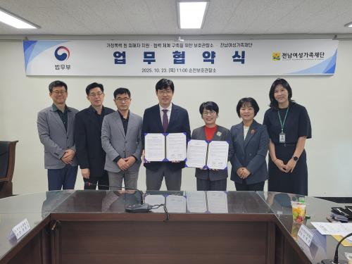 [½Åµ¿¾Æ¹æ¼Û ¼øÃµ=¹Ú±¤¿Á±âÀÚ] Àü³²¿©¼º°¡Á·Àç´Ü(¿øÀå ¼ºÇý¶õ)Àº 10¿ù 23ÀÏ(¸ñ), ¼øÃµº¸È£°üÂû¼Ò(¼ÒÀå È«À缺)¿Í °¡Á¤Æø·Â, ½ºÅäÅ·, ±³Á¦Æø·Â µî Æø·Â ÇÇÇØÀÚ Áö¿ø ¹× ¿¹¹æ±³À°À» ÅëÇÑ Áö¿ª»çȸ ¾ÈÀü¸Á ±¸Ãࡤ°­È­¸¦ À§ÇØ ¾÷¹«Çù¾à(MOU)À» ü°áÇß´Ù°í ¹àÇû´Ù. Ϯ¡¦