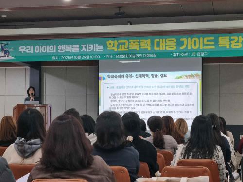 [½Åµ¿¾Æ¹æ¼Û ÀºÆò±¸=À̽ŵ¿±âÀÚ] ¼­¿ï ÀºÆò±¸´Â Áö³­´Þ 29ÀÏ ÀºÆò¹®È­¿¹¼úȸ°ü ´ëȸÀǽǿ¡¼­ Çкθð, Áö¿ª ÁֹΠ¾à 100¸íÀÌ Âü¼®ÇÑ °¡¿îµ¥ ¡®¿ì¸® ¾ÆÀÌÀÇ ÇູÀ» ÁöŰ´Â Çб³Æø·Â ¿¹¹æ ¹× ´ëÀÀ ÇÐºÎ¸ð Æ¯°­¡¯À» °³ÃÖÇß´Ù°í ¹àÇû´Ù. À̹ø Ư°­Àº ¡ãÇб³Æø·Â ´ëÀÀ °¡ÀÌ¡¦