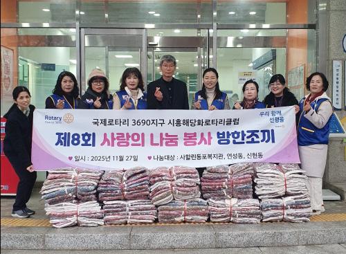 [½Åµ¿¾Æ¹æ¼Û ½ÃÈï½Ã=À̽ŵ¿±âÀÚ] ±¹Á¦·ÎŸ¸® 3690Áö±¸ ½ÃÈïÇØ´çÈ­·ÎŸ¸®Å¬·´Àº Áö³­ 11¿ù 27ÀÏ ¿¬¼ºµ¿ ³» ¾î·Á¿î ÀÌ¿ôµé¿¡°Ô µû¶æÇÑ °Ü¿ïÀ» ¼±¹°Çϱâ À§ÇØ ¹æÇÑÁ¶³¢ 100¹úÀ» ¿¬¼ºµ¿ ÇàÁ¤º¹Áö¼¾ÅÍ(µ¿Àå ±è»óµ¿)¿¡ ÈÄ¿øÇß´Ù. À̳¯ ÈÄ¿øµÈ ¹æÇÑÁ¶³¢´Â ½ÃÈïÇØ´çÈ­·ÎŸ¸®Å¬¡¦