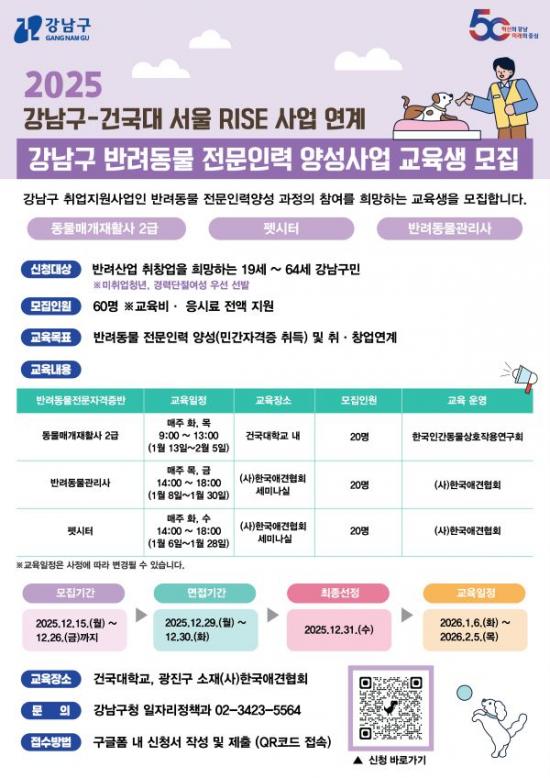 °­³²±¸, ¹Ý·Áµ¿¹° »ê¾÷ À̲ø Àü¹®Àη ¾ç¼º °úÁ¤ Âü°¡ÀÚ ¸ðÁý