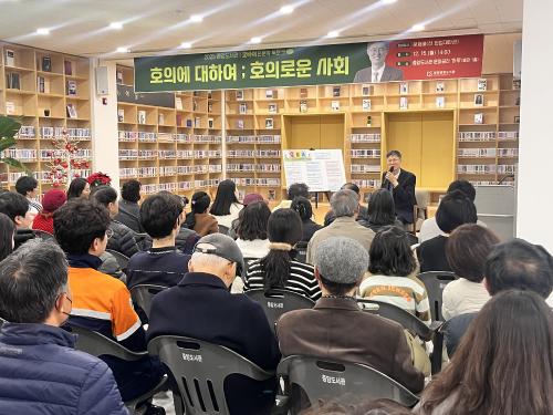 [½Åµ¿¾Æ¹æ¼Û ±¤¾ç=¹Ú±¤¿Á±âÀÚ] ±¤¾çÁß¾Óµµ¼­°üÀº Áö³­ 15ÀÏ Áß¾Óµµ¼­°ü ¹®È­°ø°£ ¡®ÇϷ硯¿¡¼­ ¡¸±Â¹ÙÀÌ Àι®ÇÐ ºÏÅäÅ©¡¹¸¦ °³ÃÖÇß´Ù. À̹ø ºÏÅäÅ©¿¡´Â Àü Çå¹ýÀçÆÇ°üÀÌÀÚ ¡¸È£ÀÇ¿¡ ´ëÇÏ¿©¡¹ÀÇ ÀúÀÚÀÎ ¹®Çü¹è ÀÛ°¡¸¦ ÃÊÃ»ÇØ ¡®È£ÀÇ¿¡ ´ëÇÏ¿©: È£ÀÇ·Î¿î »çȸ¡¯¸¦ ÁÖÁ¦¡¦
