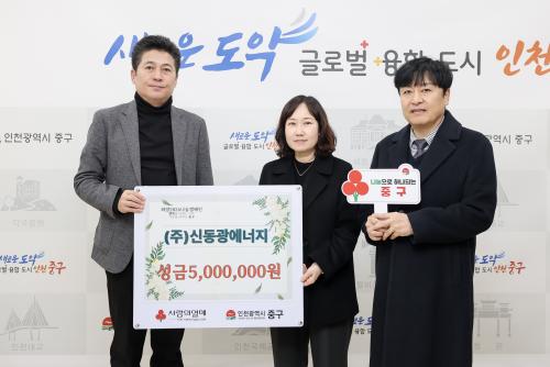 [½Åµ¿¾Æ¹æ¼Û ÀÎõ=À±¹Î½Ä±âÀÚ] ÀÎõ½Ã Áß±¸(±¸Ã»Àå ±èÁ¤Çå)´Â ÃÖ±Ù ¡®½Åµ¿±¤¿¡³ÊÁö(´ëÇ¥ ¼­¼Ò¿µ)¡¯°¡ ¿¬¸»¿¬½Ã¸¦ ¸Â¾Æ Ãë¾à°èÃþ º¹Áö Çâ»óÀ» À§ÇÑ ¼º±Ý 500¸¸ ¿øÀ» Àü´ÞÇß´Ù°í 2ÀÏ ¹àÇû´Ù. À̹ø ¼º±ÝÀº ÀÎõ»çȸº¹Áö°øµ¿¸ð±Ýȸ¸¦ ÅëÇØ Áß±¸ °ü³» Àú¼Òµæ Ãë¾à°èÃþÀ»¡¦