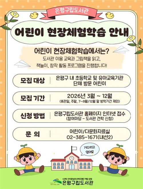 [½Åµ¿¾Æ¹æ¼Û ÀºÆò±¸=À̽ŵ¿±âÀÚ] ¼­¿ï ÀºÆò±¸´Â ¾î¸°À̵éÀÇ µ¶¼­ ½À°ü Çü¼º°ú µµ¼­°ü ÀÌ¿ë Ȱ¼ºÈ­¸¦ À§ÇØ ÀÌ´ÞºÎÅÍ 12¿ù±îÁö ÀºÆò±¸¸³µµ¼­°ü¿¡¼­ ¡®¾î¸°ÀÌ ÇöÀåüÇèÇнÀ¡¯À» ¿î¿µÇÑ´Ù°í ¹àÇû´Ù. ¡®¾î¸°ÀÌ ÇöÀåüÇèÇнÀ¡¯Àº µµ¼­°ü ÀÌ¿ë ±³À°°ú ±×¸²Ã¥ µ¿È­±¸¿¬, µ¶ÈÄ¡¦