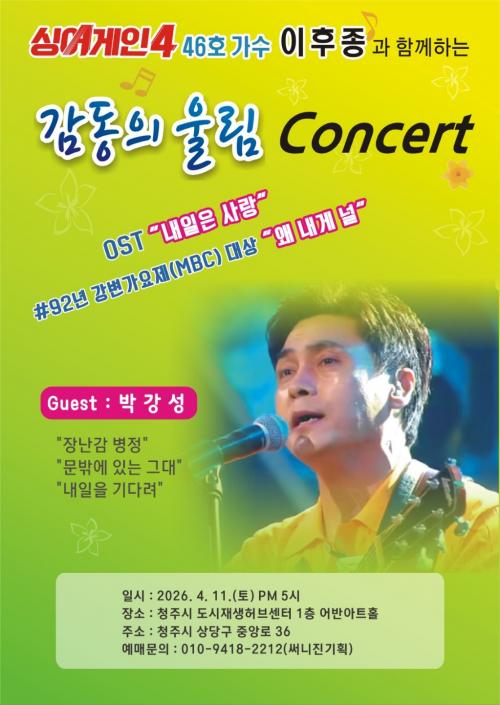 [½Åµ¿¾Æ¹æ¼Û] 1990³â´ë °¨¼ºÀ» ´ëÇ¥ÇÏ´Â OST º¸Äø®½ºÆ® ÀÌÈÄÁ¾ÀÌ ¿À´Â 4¿ù 11ÀÏ ÃæºÏ ûÁÖ¿¡¼­ ´Üµ¶ Äܼ­Æ®¸¦ °³ÃÖÇÑ´Ù. ÀÌÈÄÁ¾Àº 1992³â MBC Á¦13ȸ °­º¯°¡¿äÁ¦¿¡¼­ ¡®¿Ö ³»°Ô ³Î¡¯·Î ´ë»óÀ» ¼ö»óÇÏ¸ç °¡¿ä°è¿¡ µ¥ºßÇß´Ù. ´ç½Ã È£¼Ò·Â £Àº â¹ý°ú ¾ÈÁ¤ÀûÀÎ °¡Ã¢·Â¡¦