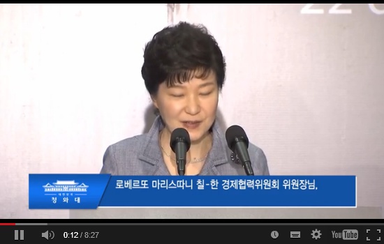 ¹Ú±ÙÇý ´ëÅë·ÉÀÌ ÇÑ-Ä¥·¹ ºñÁî´Ï½º Æ÷·³¿¡ Âü¼®ÇØ 'ÇÑ ¼ÕÀ¸·Î´Â ´Ù¸¥ ¼ÕÀ» ¾ÄÁö¸¸ ¾ç¼ÕÀ¸·Î´Â ¾ó±¼À» ¾Ä´Â´Ù'´Â Ä¥·¹ ¼Ó´ãÀ» ÀοëÇÏ¸ç ¾ç±¹ °æÁ¦ÀεéÀÇ ÆÄÆ®³Ê½ÊÀ» °­Á¶Çß½À´Ï´Ù!