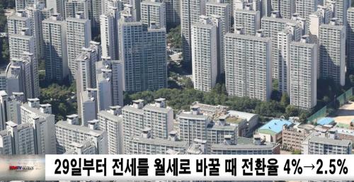 Àü¿ù¼¼ ÀüȯÀ²Àº Àü¼¼ º¸Áõ±ÝÀÇ ÀüºÎ³ª ÀϺθ¦ ¿ù¼¼·Î ÀüȯÇÒ ¶§ Àû¿ëµÇ´Â »êÁ¤À²·Î, ±¹ÅäºÎ´Â "ÇöÀç ½ÃÁ߱ݸ® ¼öÁØÀ» °¨¾ÈÇÒ ¶§ Àü¿ù¼¼ ÀüȯÀ²ÀÌ °úµµÇÏ°Ô ³ô´Ù´Â ÀǰßÀÌ ¸¹¾Ò´Ù"°í ÇÏÇâ ÀÌÀ¯¸¦ ¼³¸íÇß½À´Ï´Ù.