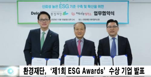 ESG Awards´Â ±¹³» ÃÖÃÊ È¯°æ Àü¹® °øÀÍ Àç´ÜÀΠȯ°æÀç´Ü, ESG Àü·« ÀÚ¹® ¼ºñ½º¸¦ Á¦°øÇÏ´Â µô·ÎÀÌÆ® ¾ÈÁø, ÀΰøÁö´É(AI) ±â¹Ý ESG Æò°¡ ½ºÅ¸Æ®¾÷ÀÎ Áö¼Ó°¡´É¹ßÀü¼Ò 3°³ ±â°üÀÌ ÇÔ²² ESG(ȯ°æ, »çȸ, °Å¹ö³Í½º) ¼º°ú¸¦ AI ±â¹ÝÀ¸·Î ±¹³» ÃÖÃÊ·Î Æò°¡, ¼±Á¤Çß´Ù.