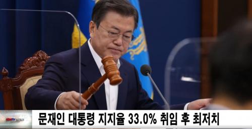 ¸®¾ó¹ÌÅͰ¡ Áö³´Þ 26ÀϺÎÅÍ 30ÀϱîÁö Àü±¹ 18¼¼ ÀÌ»ó 2õ523¸íÀ» ´ë»óÀ¸·Î Á¶»çÇÑ °á°ú ¹® ´ëÅë·ÉÀÇ ±¹Á¤¼öÇà ÁöÁöÀ²(±àÁ¤Æò°¡)Àº 33.0%·Î ÀüÁÖº¸´Ù 0.8%Æ÷ÀÎÆ® ¶³¾îÁ³´Ù.