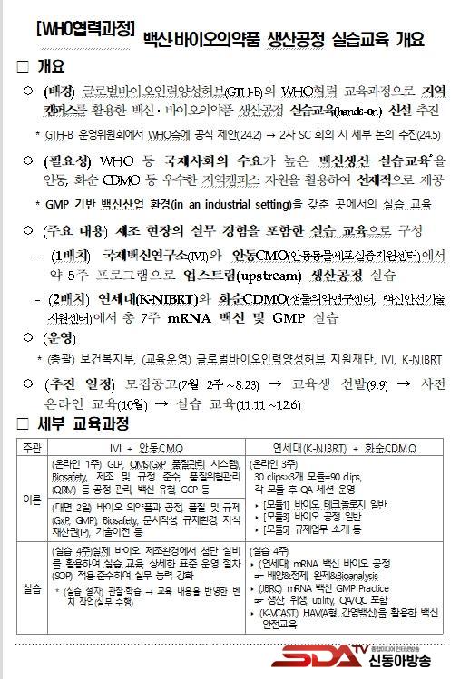»ý»ê °øÁ¤ ½Ç½ÀÀº ½ÇÁ¦ ±¹³» ¹é½Å․¹ÙÀÌ¿À ÀǾàǰ »ý»ê½Ã¼³ÀÎ ¼Ûµµ ¿¬¼¼´ë K-NIBRT»ç¾÷´Ü ¹× ¾Èµ¿ µ¿¹°¼¼Æ÷½ÇÁõÁö¿ø¼¾ÅÍ¿Í È¼ø »ý¹°ÀǾ࿬±¸¼¾ÅÍ µîÀ» Ȱ¿ëÇÏ¿© ÀÌ·ïÁø´Ù.