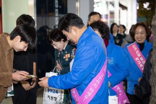 ÀÌ ±³À°°¨Àº ¼ö´ÉÀ» ³¡³½ ÇлýµéÀ» °Ý·ÁÇϰí, ½ÃÇèÀ» ³¡³½ ÇØ¹æ°¨À» °ÇÀüÇÏ°Ô Ç® ¼ö ÀÖµµ·Ï µ¶·ÁÇß´Ù. ¶Ç Âü°¡ÀÚµé°ú ÇÔ²² ½Ã¹Îµé¿¡°Ô Çб³Æø·Â ¿¹¹æ È«º¸ ¹°Ç° µîÀ» ³ª´²ÁÖ¸ç °ü½É°ú µ¿ÂüÀ» Ã˱¸Çß´Ù.