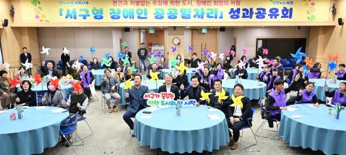¼±¸´Â 20ÀÏ ¼±¸Ã» µéºÒȦ¿¡¼¡®¼±¸Çü Àå¾ÖÀÎ ¸ÂÃãÇü °ø°øÀÏÀÚ¸®»ç¾÷ ¼º°ú°øÀ¯È¸¡¯¸¦ ¿°í ±×°£ÀÇ »ç¾÷ ¼º°ú¸¦ °øÀ¯ÇÏ´Â ÀÚ¸®¸¦ °¡Á³´Ù. ƯÈ÷ À̳¯ ¼º°ú°øÀ¯È¸´Â Àå¾ÖÀεéÀÌ Çà»ç ÁøÇà°ú °ø¿¬ µîÀ» ¸Ã¾Æ Àå¾ÖÀΰú ºñÀå¾ÖÀÎÀÇ ±¸ºÐ ¾ø´Â ÀÏ»óÀÇ Çʿ伺À» °Á¶Çß´Ù.
