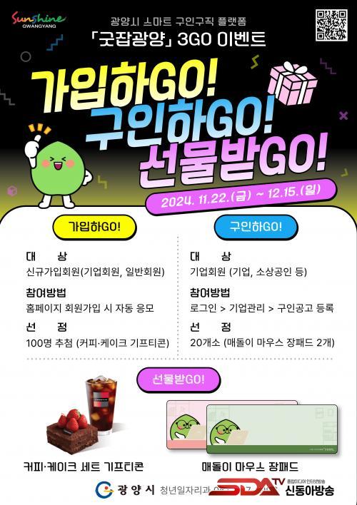 ±â¾÷ȸ¿ø(»ç¾÷ÀÚ)À» ´ë»óÀ¸·Î ÇÑ À̺¥Æ®´Â ¡®±¸Àΰø°í µî·Ï¡¯ À̺¥Æ®´Ù. ±¸ÀÎ ¼ö¿ä°¡ ÀÖ´Â ±â¾÷ÀÌ Ç÷§Æû ȨÆäÀÌÁö(https://job.gwangyang.go.kr)¿¡ ä¿ë°ø°í¸¦ µî·ÏÇϸé À̺¥Æ®¿¡ ÀÚµ¿ Âü¿©ÇÏ°Ô µÇ´Â ¹æ½ÄÀÌ´Ù. ±¤¾ç½Ã´Â 20°³¼Ò¸¦ ÃßÃ·ÇØ ±¤¾ç½Ã ¸¶½ºÄÚÆ®°¡ ±×·ÁÁø ¸Åµ¹ÀÌ ¸¶¿ì½ºÀåÆÐµå¸¦ 2°³¾¿ ÁõÁ¤ÇÒ °èȹÀÌ´Ù.